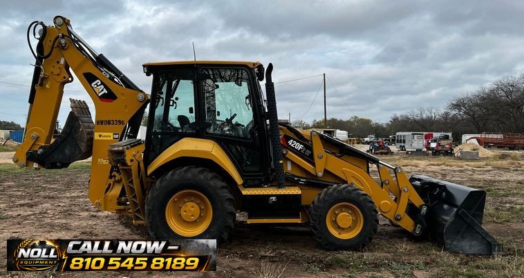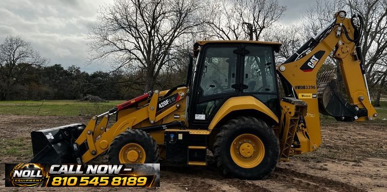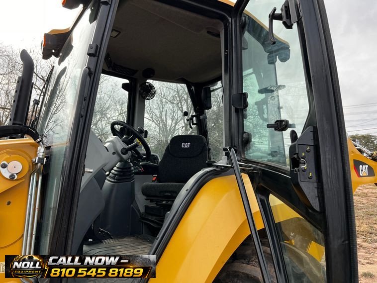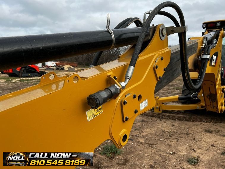 2019 Caterpillar 420F2 IT Backhoe Loader with 108 hours showing. Powered by a Caterpillar C4.4 4.4L 4-cylinder diesel engine and equipped with a powershift transmission (4F/4R), four-wheel drive, and differential lock. Features an enclosed ROPS operator station (EROPS) with heat, A/C, pilot-controlled backhoe controls, and pattern changer. The IT carrier loader includes auxiliary hydraulics, auxiliary electrical outlet, and a hydraulic quick coupler. Comes with a Caterpillar 251-1794 bucket with 1.5 cu. yd. capacity, 95″ width, bucket leveler, and bolt-on cutting edge.