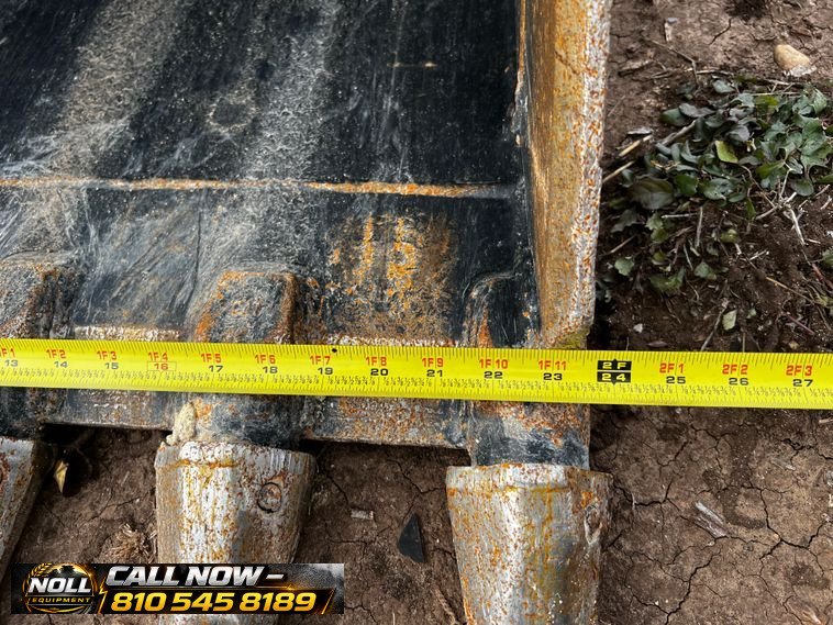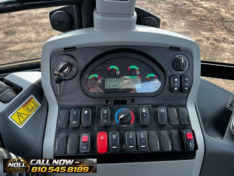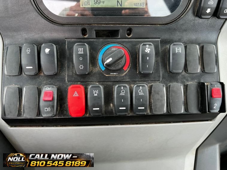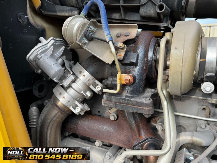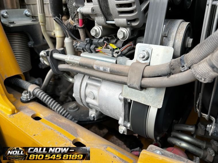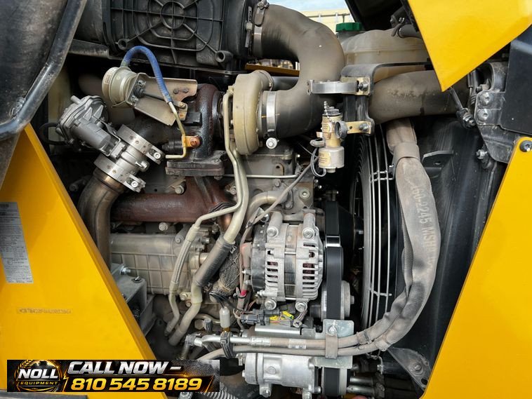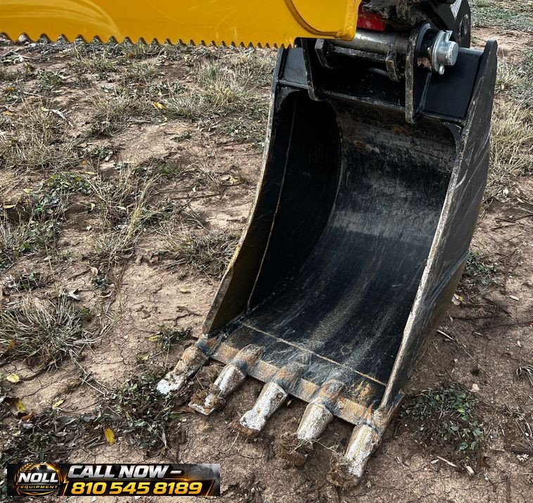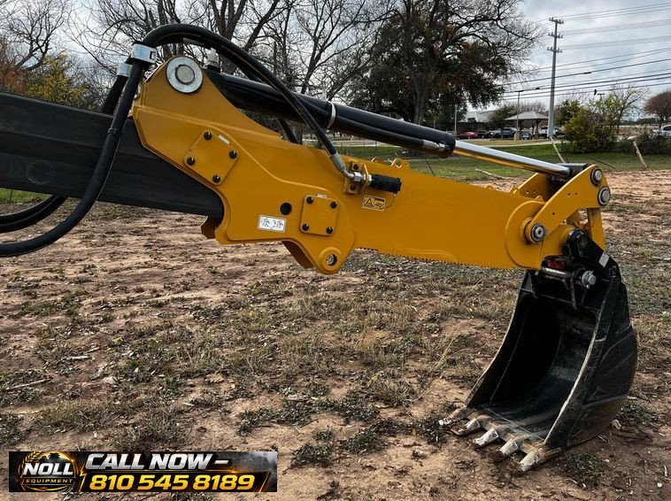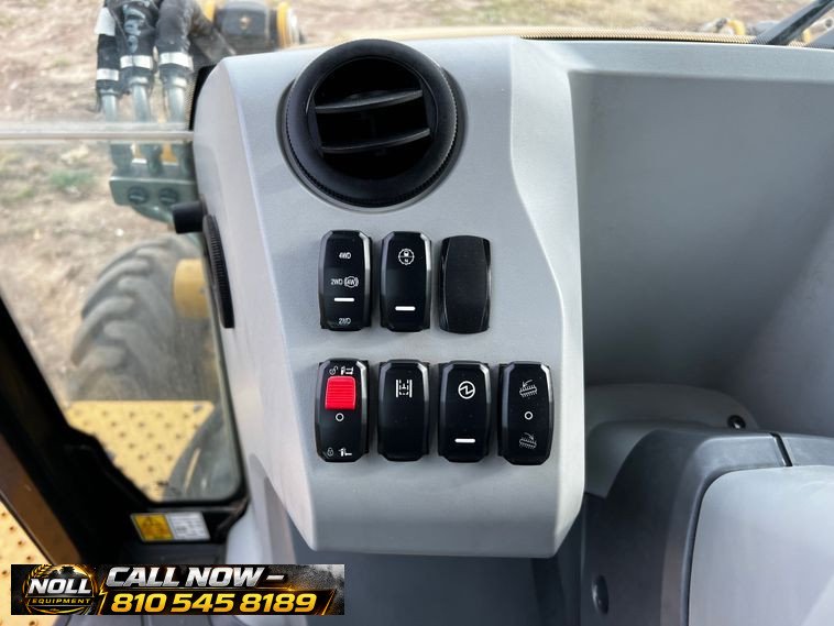 The backhoe features an extendable stick, hydraulic quick coupler, auxiliary hydraulics, and a 24″ Caterpillar bucket with 5 teeth and weld-on cutting edge. Rides on Goodyear tires: 12.5/80-18 front and 19.5L-24 rear.