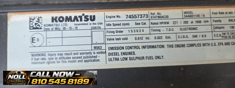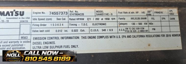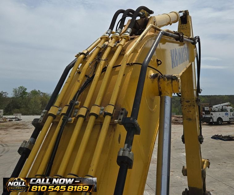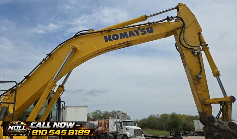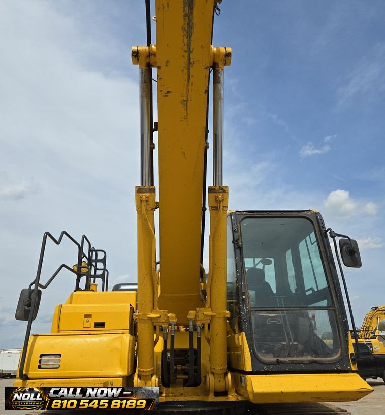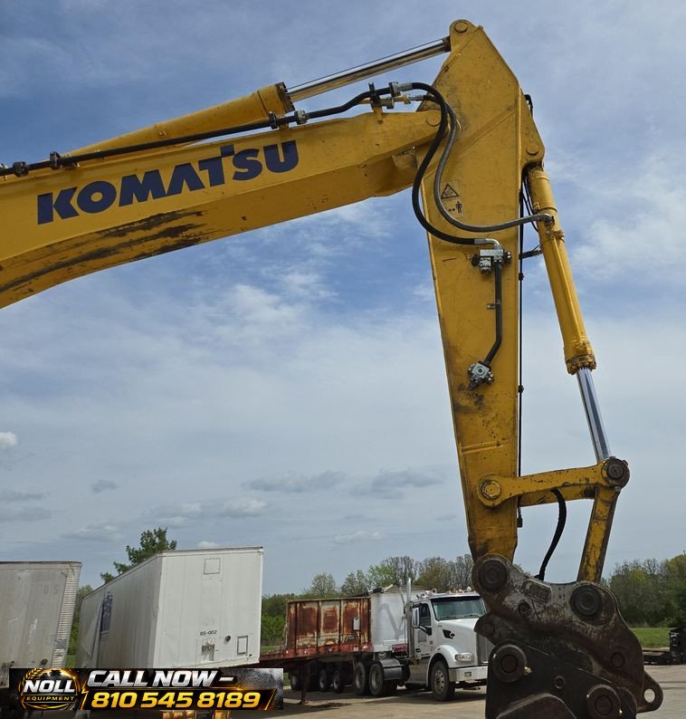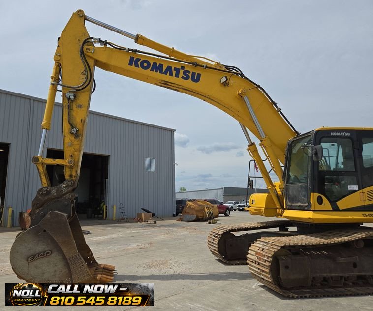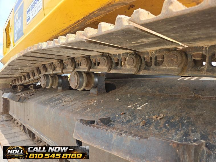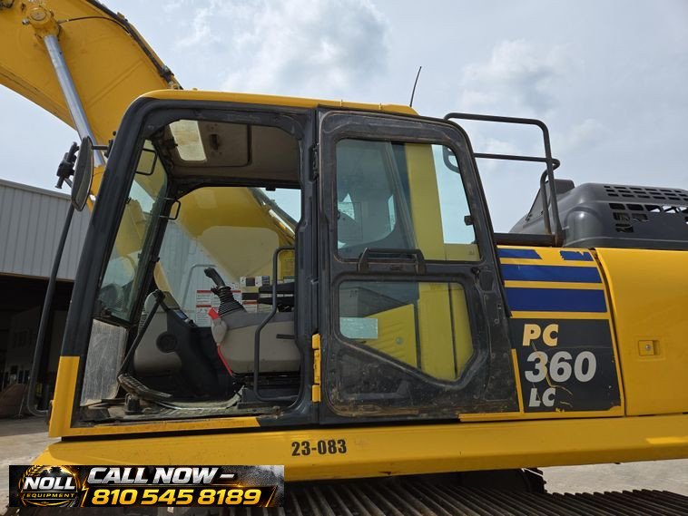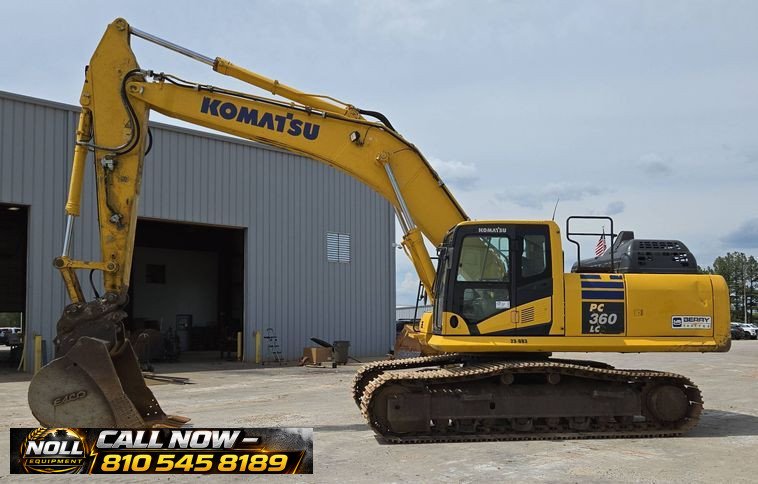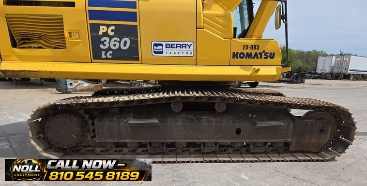 2020 Komatsu PC360LC-11 Excavator with 7,184 hours showing. Powered by a Komatsu SAA6D114E-6 8.9L 6-cylinder diesel engine rated at 271 HP (202 kW) and equipped with a hydrostatic transmission. Features an enclosed cab with heat, A/C, and backup camera for operator comfort and visibility. Equipped with auxiliary hydraulics, standard boom, and a 10’6″ stick with JRB hydraulic quick coupler. Includes a 53″ Esco bucket with 7 teeth. Rides on 33.5″ steel tracks with triple grouser pads.