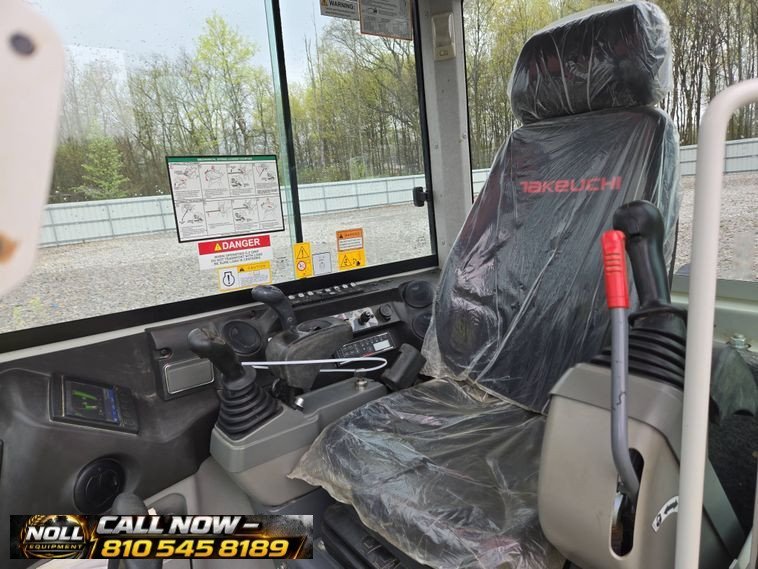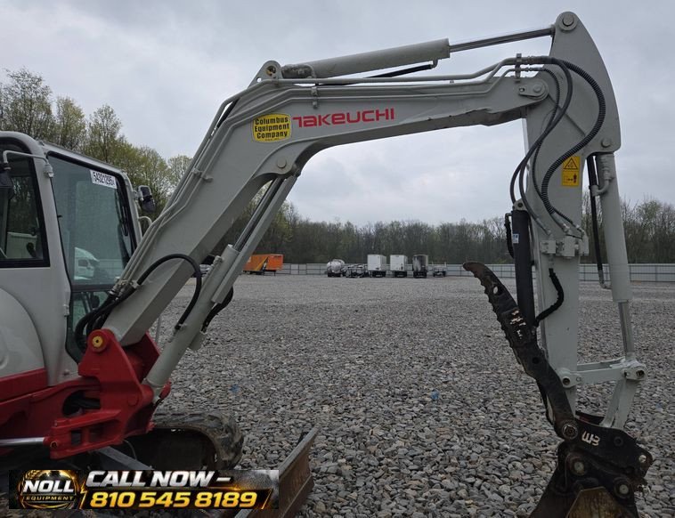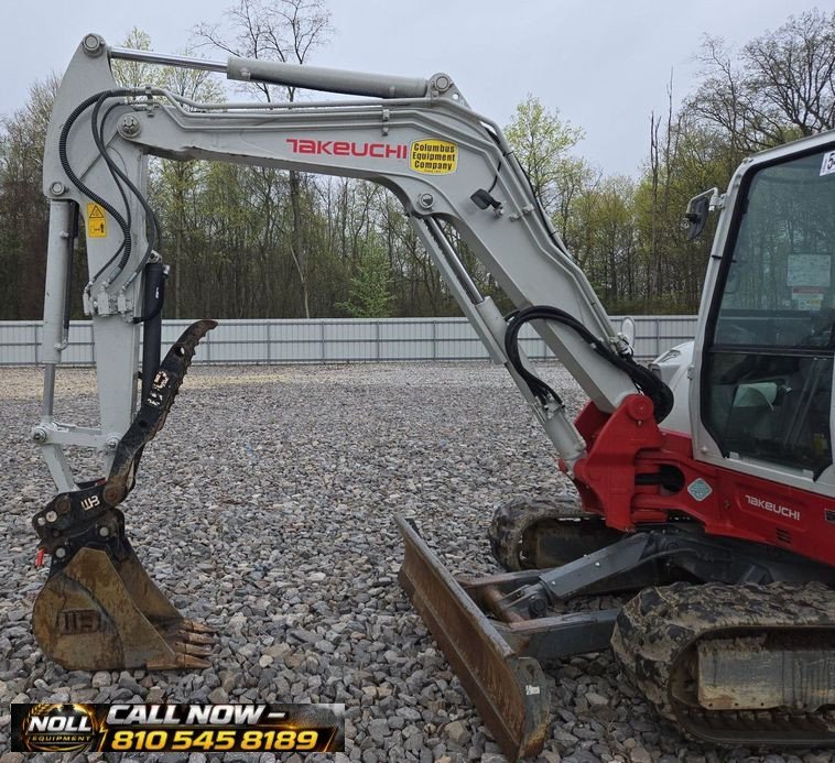 2022 Takeuchi TB260 with 1,142 hours, powered by a Yanmar diesel engine and hydrostatic drive. Enclosed cab with AC/heat, pattern changer, swing boom, and 78” blade. Includes hydraulic thumb, quick coupler, and 4 buckets (12”, 19”, 37”, 49”). Runs on 15.5” rubber tracks—clean, versatile, and ready to work.